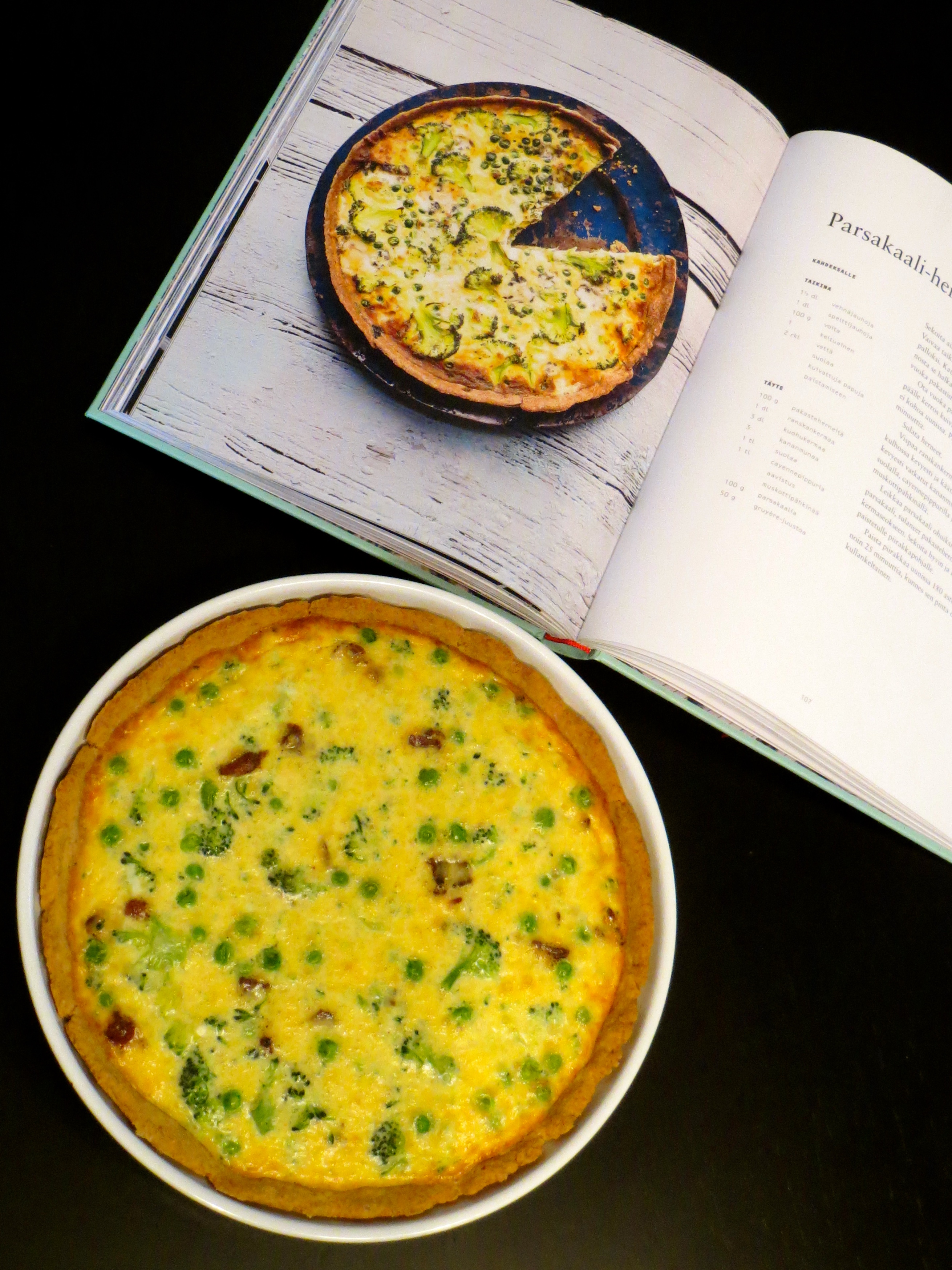 Ohjeen parsakaali-hernequicheen tarjoili Richard McCormick Pariisi-keittokirjassaan. Kanelinen puolukkapiiras taas valmistui K-ruoka.fi -sivuston reseptiikkaa hiukan muunnellen, josta juontuikin mieleeni, että itse pidän piirakoista myös sen takia, että niitä leipoessa tällainen mitään-ruoaksi-kelpaavaa-ei-sovi-heittää-roskiin -ideologialla varustettu keittiökeiju onnistuu hienosti hyödyntämään kaappiin syystä tai toisesta jääneitä ainesosia esimerkiksi piirakkatäytteitä tai -pohjia sopivasti soveltamalla. Palkitsee mieltä ja ruumista.