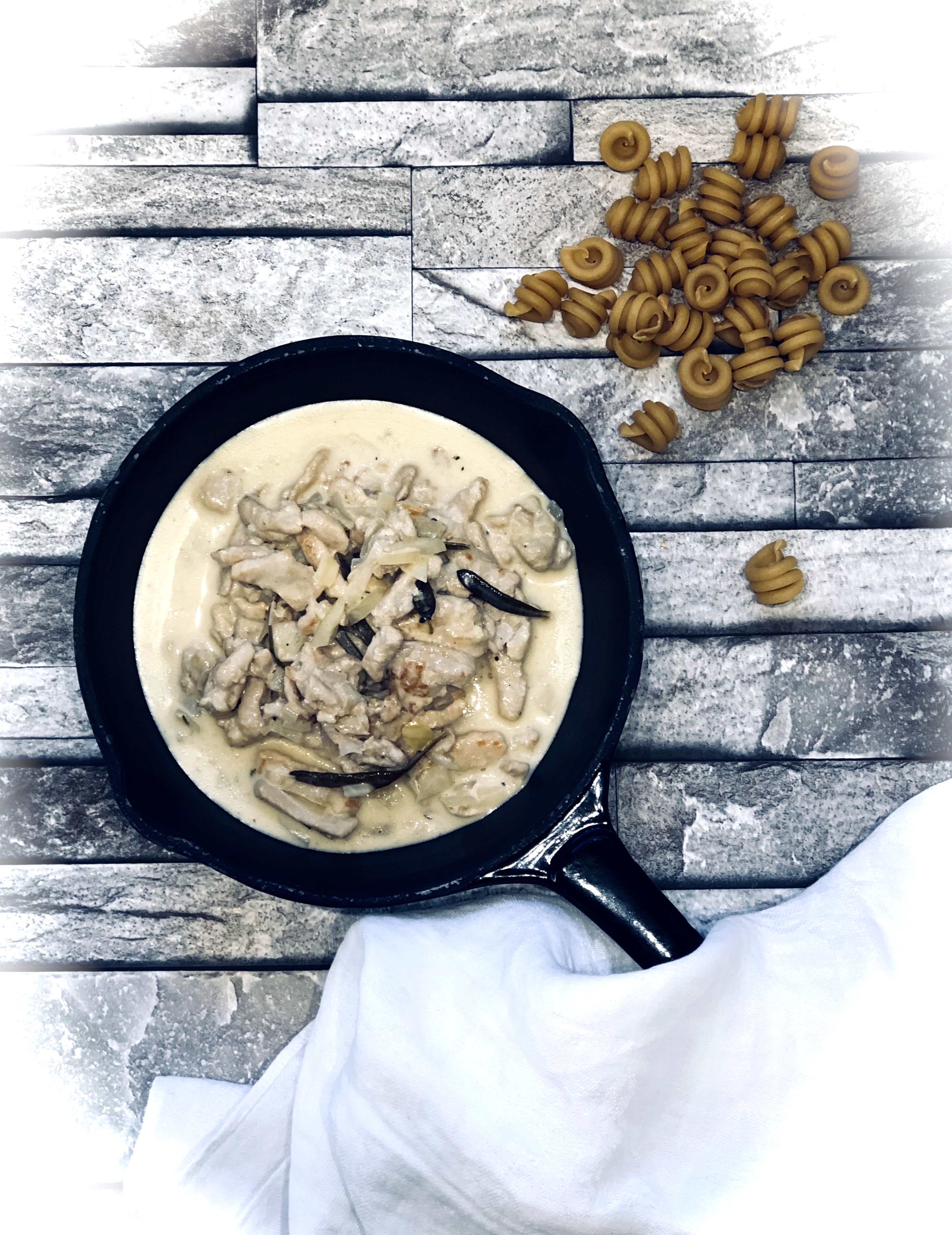 Joku kerta kaupasta kotiin kulkeutunut paketti viljaporsaan minuuttisuikaleita johdatti minut seuraavan pastareseptin äärelle. Tuolloin odotukseni eivät olleet tavanomaista hyvää korkeammalla, mutta kastike osoittautuikin sen verran maukkaaksi, että sitä oli tehtävä pian uudestaan ja jaettava resepti tännekin. Erityisesti rosmariini toi makumaailmaan kiehtovuutta, juusto täyteläisyyttä ja sitruuna sitä oivallisesti tasapainottavaa raikkautta.