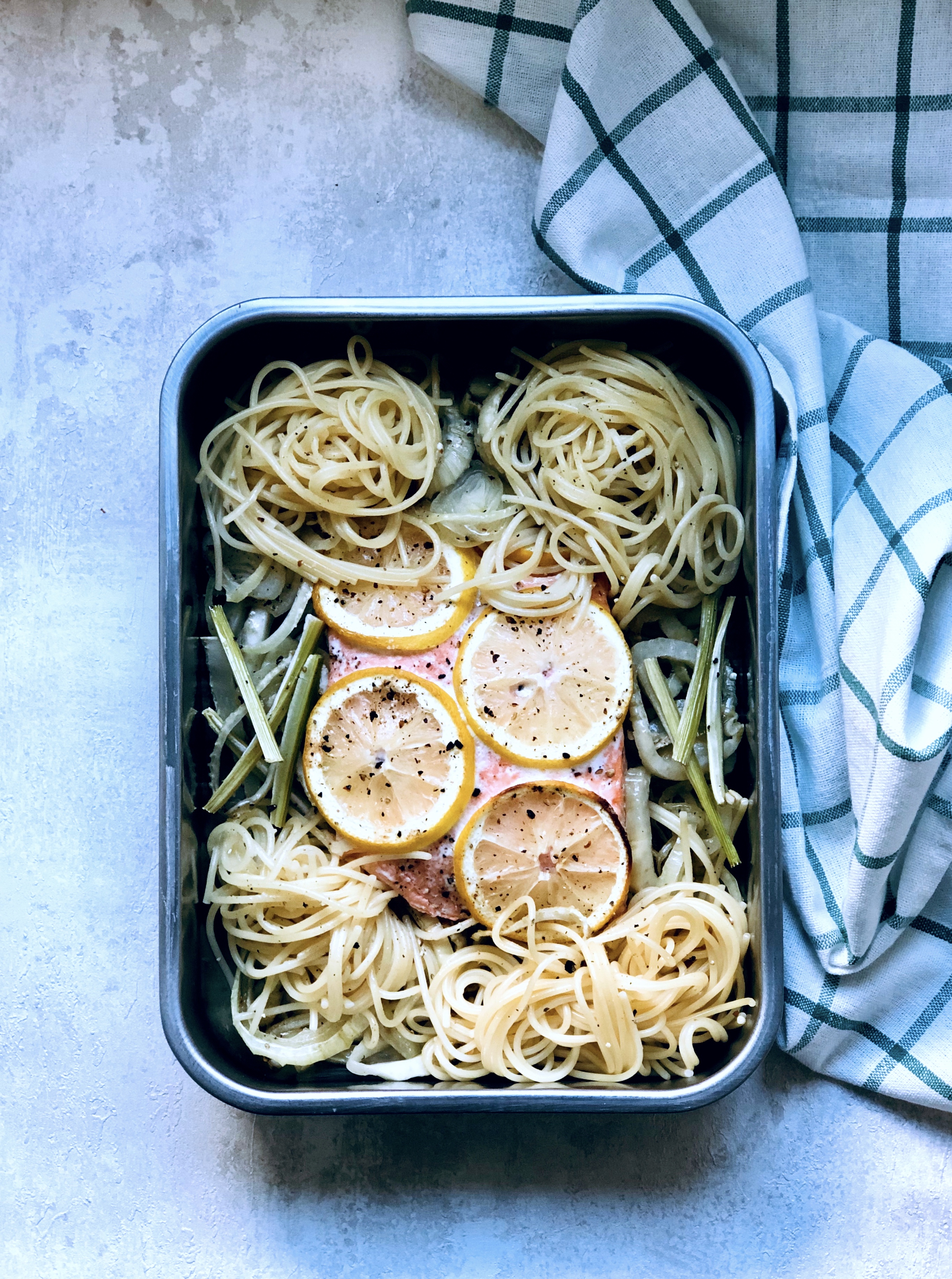 Teki mieli kokeilla tälläkin saralla jotakin hieman uutta ja juuri tarpeeseen tuli seuraava Perinneruokaa prkl -blogin Mikan kehittelemä uunilohipasta. Uunissa tästä valmistetaan ainoastaan lohi, pasta keitellään erikseen, eli ihan yhden astian ruoka tämä ei ole, mutta äärimmäisen helppo joka tapauksessa. Itselleni ykkösjuttu tässä reseptissä taisi olla fenkoli, jonka käyttöä olen jostakin syystä hieman aristellut. Se sopi uuniloheen vallan mainiosti ja varmasti tulen tästä lähtien käyttämään sitä useamminkin. Oi, että tykkään uusien kasvisten löytämisestä!