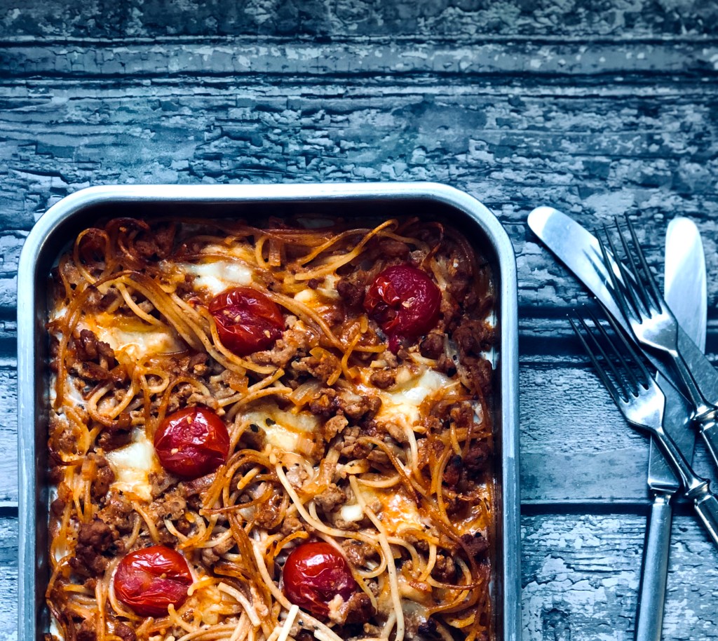 Jos mietitään hetki lapsiperheiden perinteisiä ruokasuosikkeja, nousevat jo lyhyellekin listalle melko suurella todennäköisyydellä sekä makaronilaatikko että jauhelihakastike. Entäpä jos ne yhdistää, minkälainen soppa siitä syntyy? No, hyvä tietysti, sellainen perustoimiva. Kun ensin keittelee maukkaan jauhelihakastikkeen ei tällä systeemillä voi mennä kovin pahasti metsään, ainakaan jos perinteiset jauhelihasuosikit kuuluvat tykättyihin valintoihin. Hyvä juttu tässä on lisäksi se, että mielitekojen ja ruokavarastojen mukaan vuokaan voi ujuttaa mukaan vähän mitä sattuu ja samalla löytyy käyttökohde myös edellispäivinä keitetylle ylimääräiselle pastalle. Kannattaa testailla!