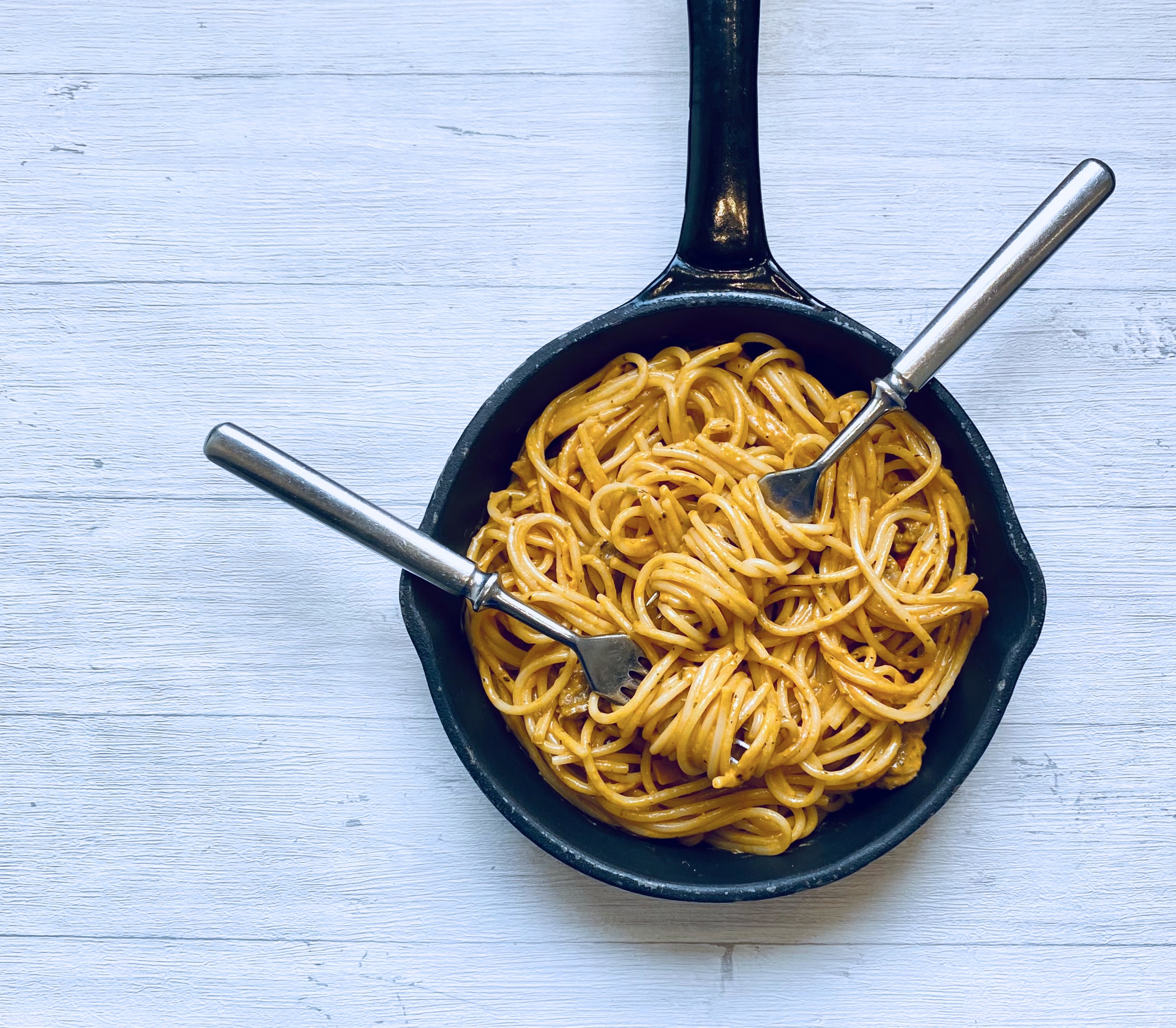 Keitä pasta kypsäksi ja lisää kastikkeen joukkoon tai tarjoile sen rinnalla.