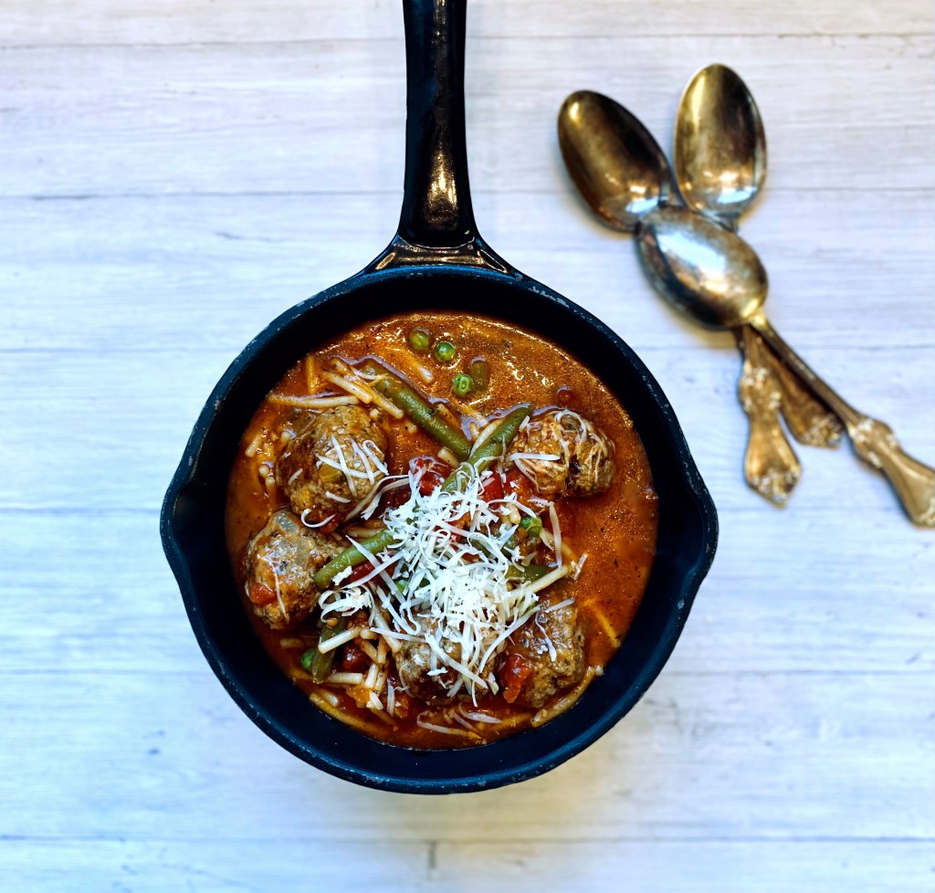 Italialainen lihapullakeitto on juuri sitä, mitä odottaa saattaakin, keitoksi pukeutunutta pasta bolognesea. Erilaisia kasviksia lisäämällä siitä saa helposti muotoiltua omaan makumaailmaan sopivan ja pastan määrää muuttamalla enemmän tai vähemmän keittomaisen. Kannattaa joka tapauksessa valita jokin pieni pastalaji. Itse jouduin tällä kertaa tyytymään raketti spagettiin kaupan heikon valikoiman vuoksi, mutta mieluiten olisin käyttänyt orzoa, omaa pikkupasta suosikkiani.