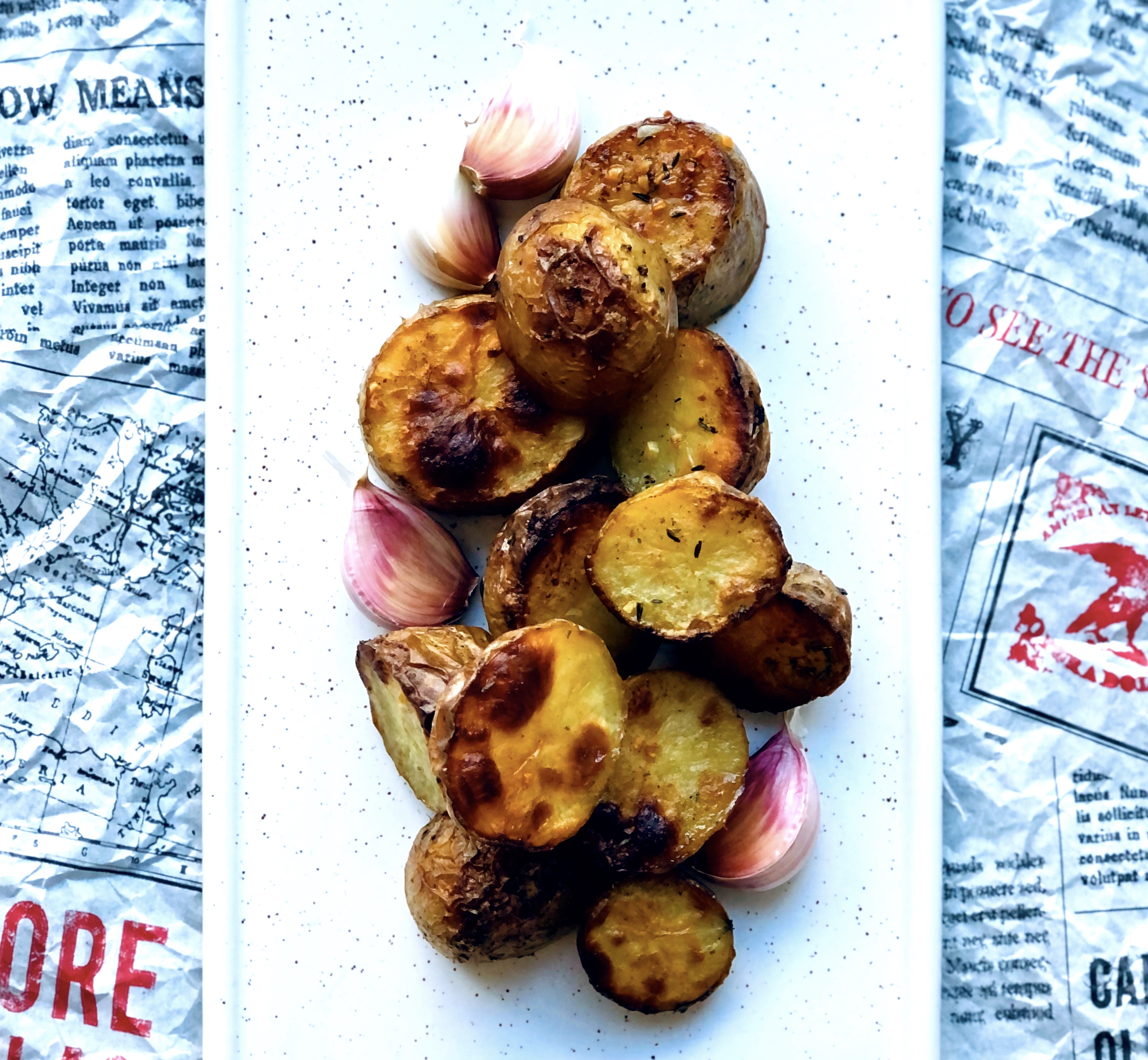 Tarkista haarukalla perunoiden kypsyys. Jos ne ovat tarpeeksi pehmeitä, käännä ne vielä ympäri leikkuupinta peltiä vasten. Näin ne imevät voin itseensä.