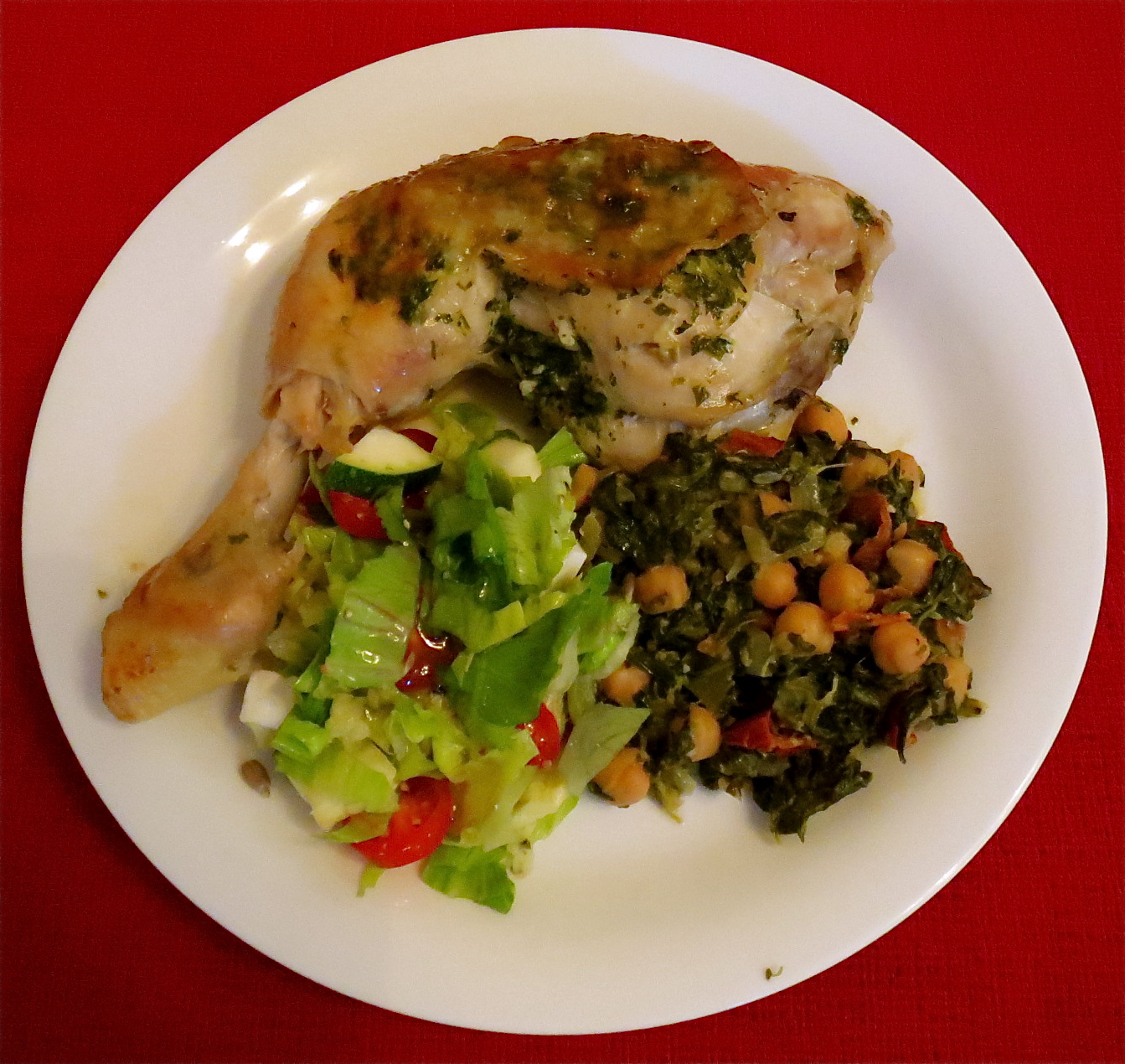 Kovinkaan täydellisestä äijäilystä ei kuitenkaan nyt voida puhua, sillä poimimme kirjasta ainoastaan kaksi lisäkereseptiä broilerin koipiemme rinnalle, mutta niin tai näin, toimivat äijämuonat hyvin pihveittäkin. Päivällispöytäämme astelivat siis kukkakaalipaistos sekä pinaattimuhennos, joita molempia suosittelen kokeilemaan – joko pihvien kanssa tai ilman. Ainakin broileri osoittautui oivalliseksi kumppaniksi tälle kaksikolle.