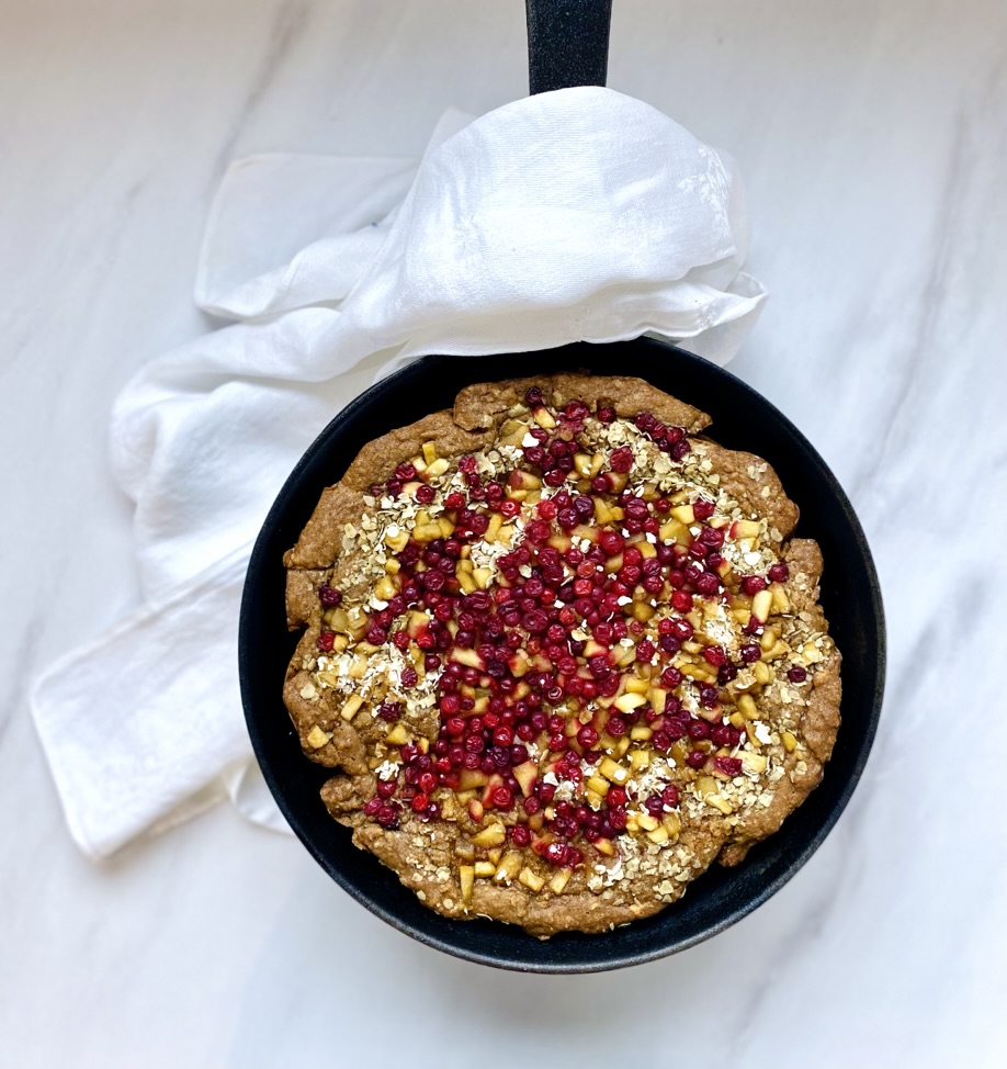 Yksi ehkä mielestäni parhaista helpoista leivonnaisista on amerikkalaisen cookien isompi versio, keksipiirakka. Tällä kertaa valitsin piirakkaan pohjoismaisuutta henkiviä makuja, kirpeää omenaa ja puolukkaa, jotka tasapainottivat mainiosti taikinan makeutta.