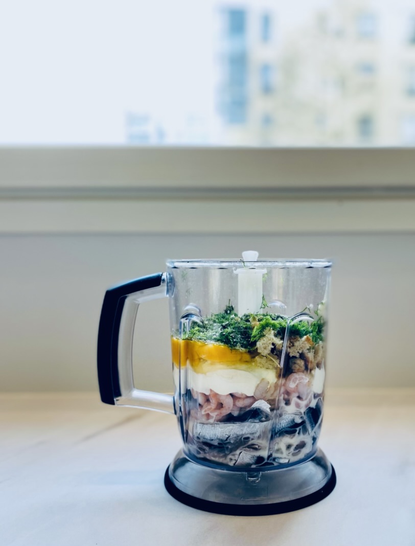 Yhdistä kerma, sitruunan kuoriraaste, juustoraaste sekä suola ja pippuri.