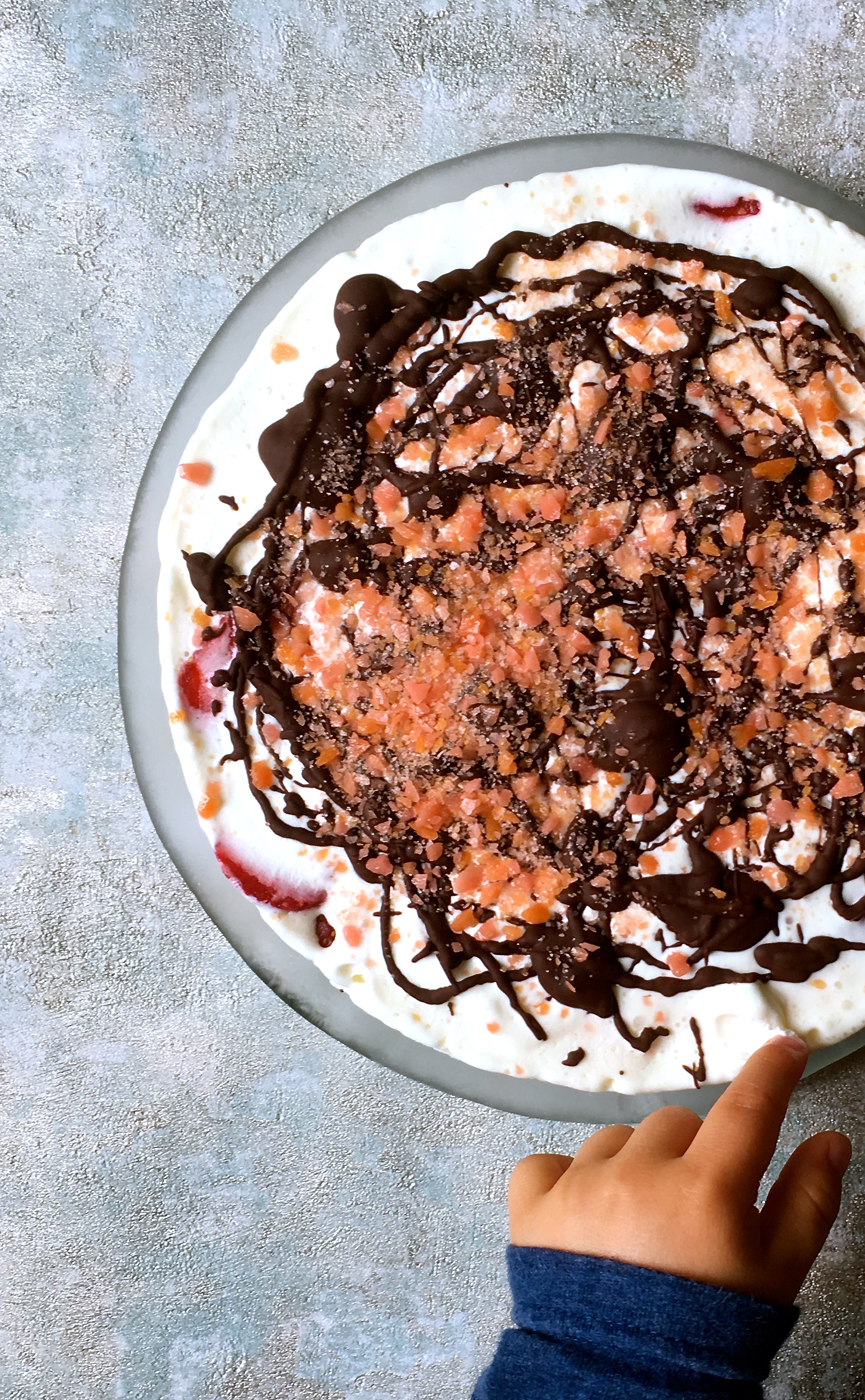 Levitä litra jonkin verran sulanutta jäätelöä pohjan päälle.