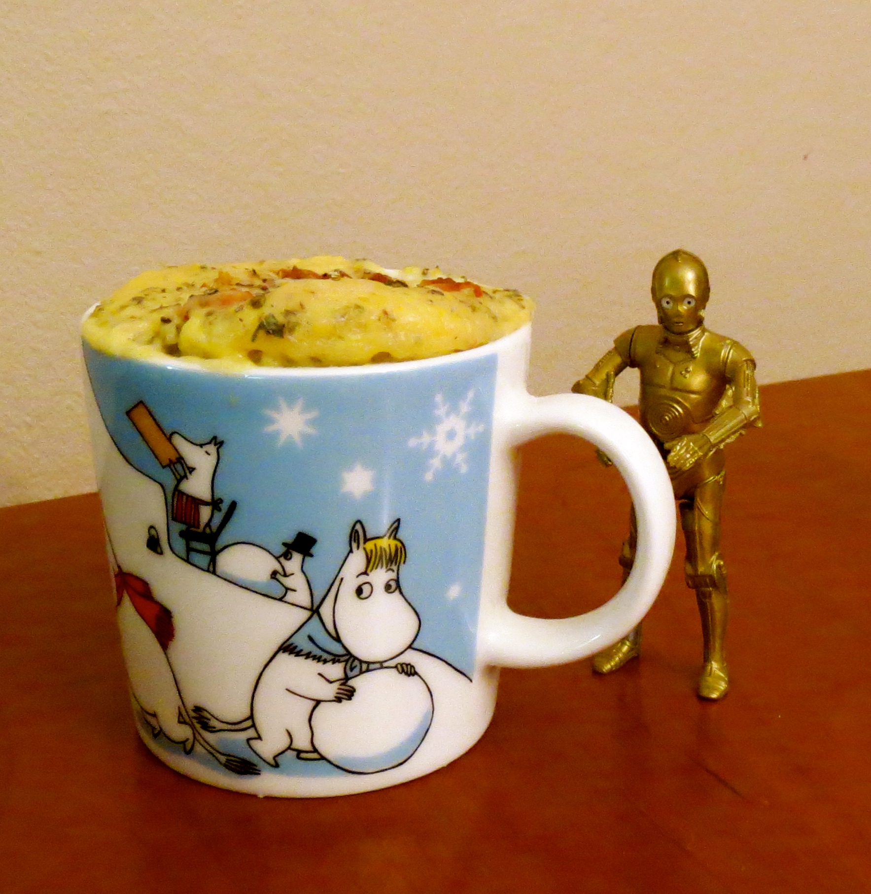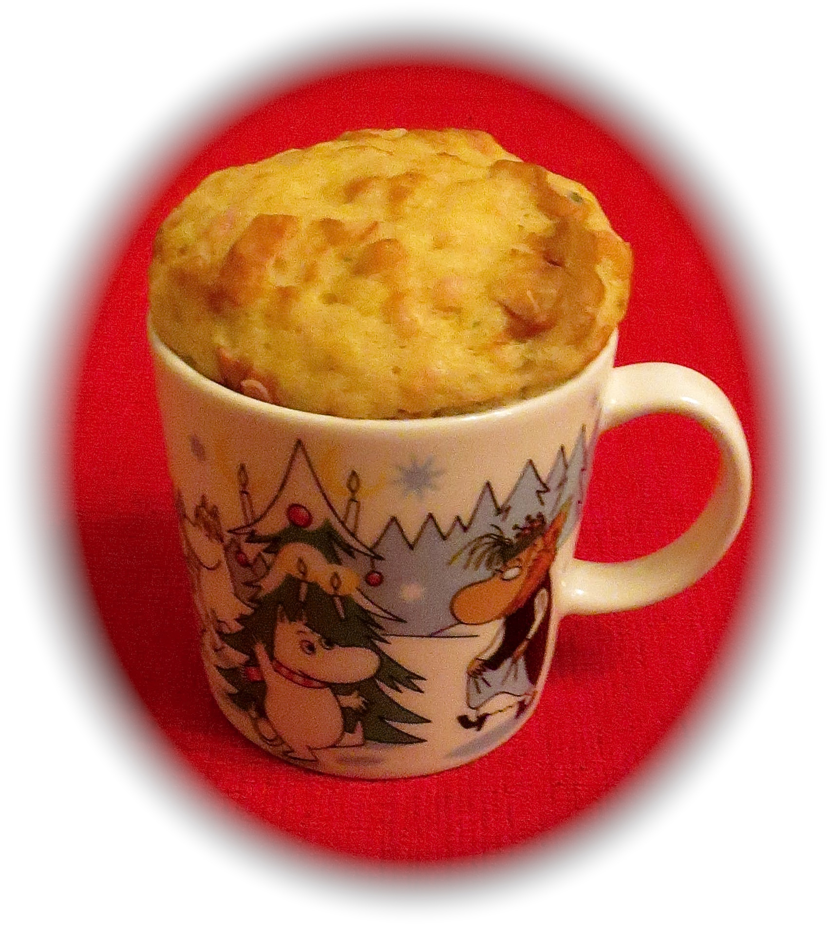 Tätä artikkelia ei suinkaan kirjoitettu ainoastaan vanhoja reseptejä uudelleen esiintuomaan, vaan sen pääasiallinen tarkoitus on kertoa hauskasta löydöksestä. Tuore tuttavuuteni, ällistyttävän nopeasti valmistuvat suolaiset ”kakkuset” ansaitsevat nimittäin ehdottomasti huomionosoituksen. Ohje löytyy kirjasta Suolaiset mukiherkut : valmista mikrossa 2 minuutissa. Nimensä mukainen teos, jonka esittelen pikimmiten tarkemmin, todella toimii ja sen avulla syntyvät niin brunssiherkut kuin maittavat alkupalatkin, vaikka ihan heti en olisi uskonut, että leipominen mikroaaltouunissa on todella mahdollista.