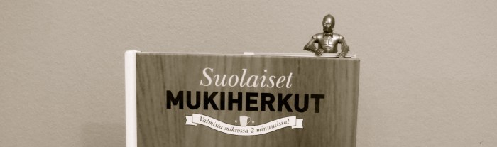 Lene Knudsenin Suolaiset mukiherkut : valmista mikrossa 2 minuutissa! on nimensä mukainen kirja. Sen ohjeistuksella valmistuvat kupin kokoiset kakkuset todella muutamassa minuutissa, mitä nyt hieman lisäaikaa on laskettava ainesten pilkkomiseen ja sekoittamiseen sekä mahdollisen täyteläisen kuorrutteen valmistukseen, johon teos myös antaa erilaisia ohjeita.