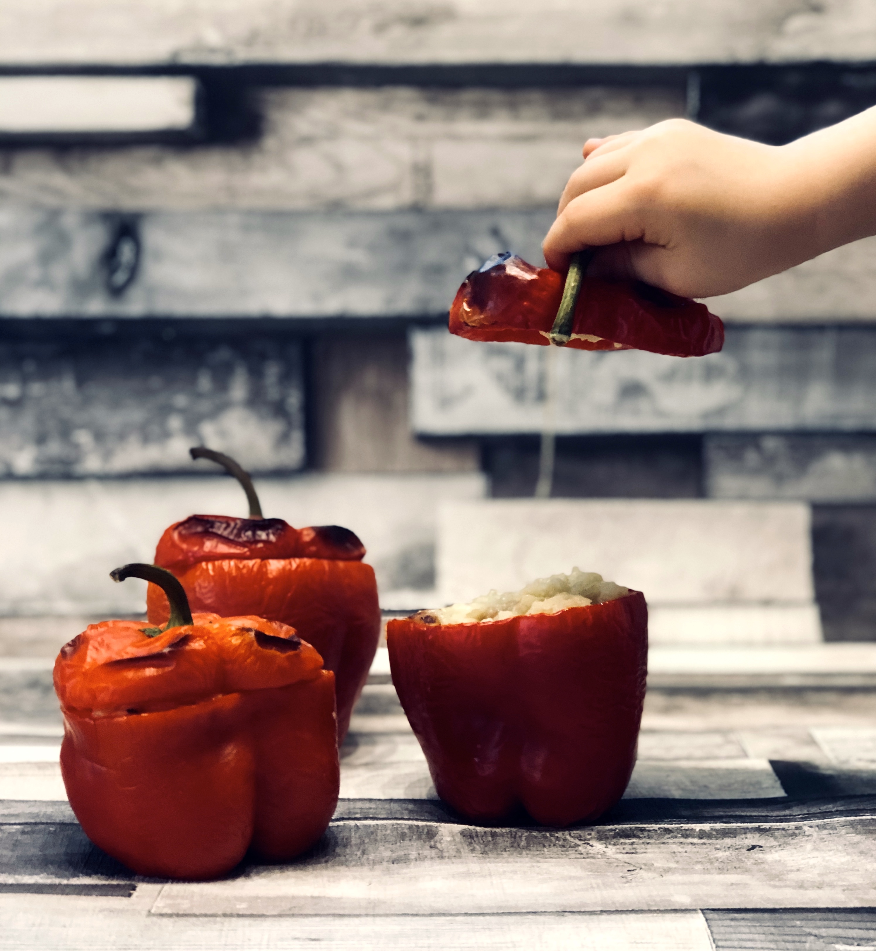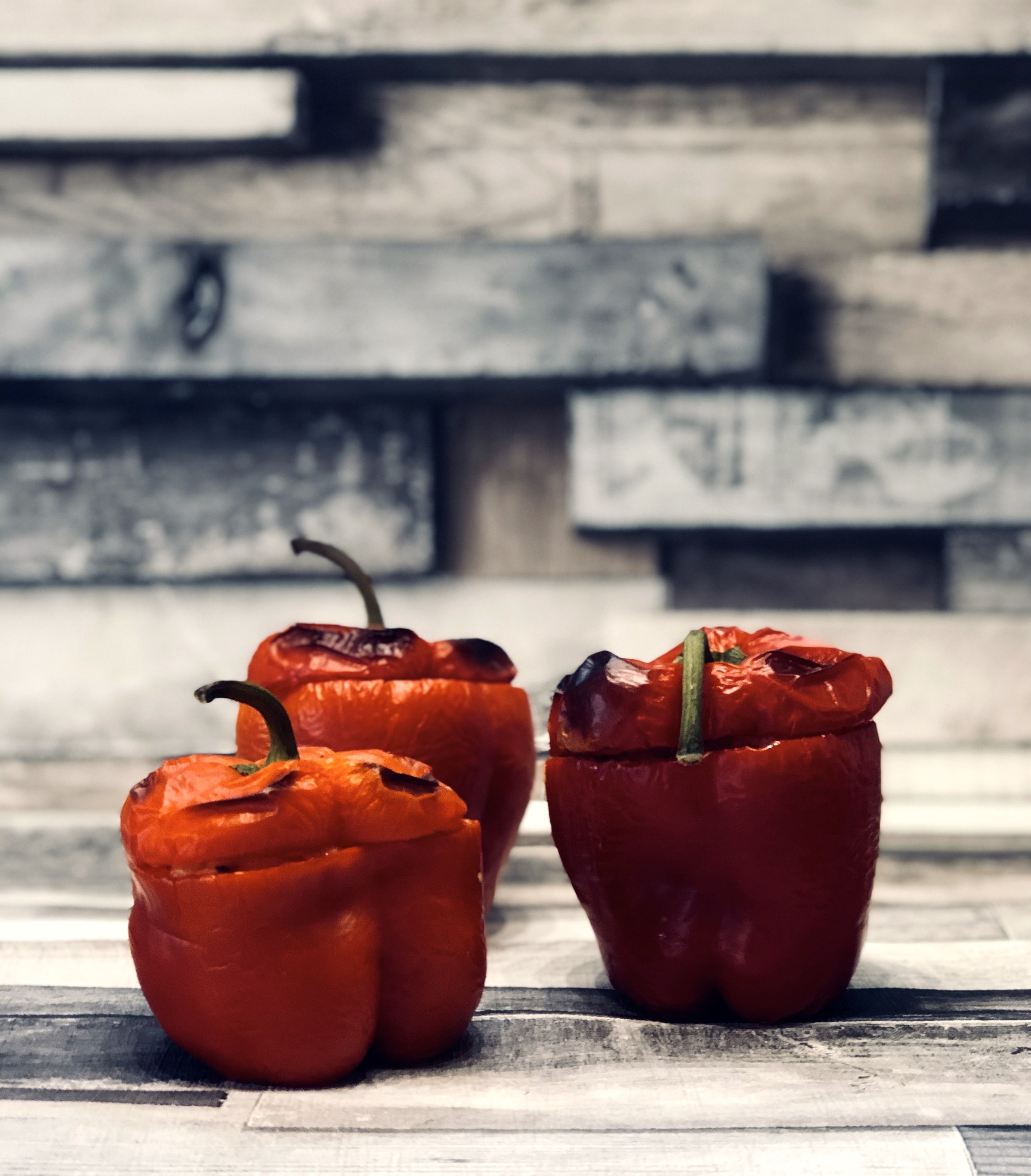 Nosta paiston jälkeen paprikan puolikkaat takaisin päällekkäin, jolloin syntyy hauskoja paprikapurilaisia. Voit tarjoilla puolikkaat myös sellaisinaan pienempinä cocktailpaloina.