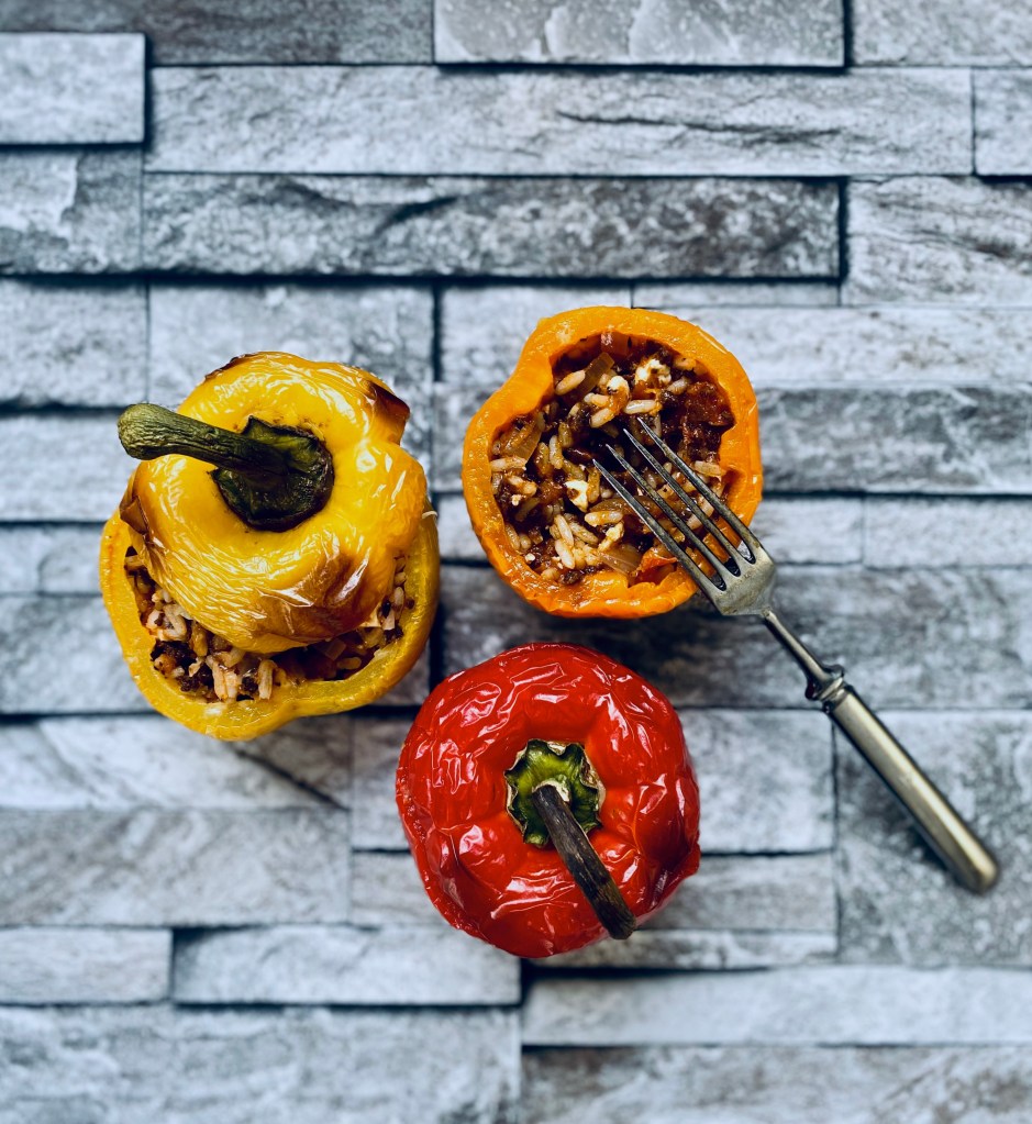 Vaikka täytetyt paprikat kuuluvat meillä säännöllisesti toistuviin vakioaterioihin, en ollut aiemmin kokeillut täyttää minipaprikoita. Nyt kokeilin ja nepä olivatkin hauska tuttavuus, sopisivat mainiosti esimerkiksi cocktailhenkisten illanistujaisten noutopöytään. Kun kaksi täytettyä minipaprikaa taas nostaa päällekkäin, syntyy paprikapurilainen, joita ainakin meillä lapset pitivät hauskoina ilmestyksinä.