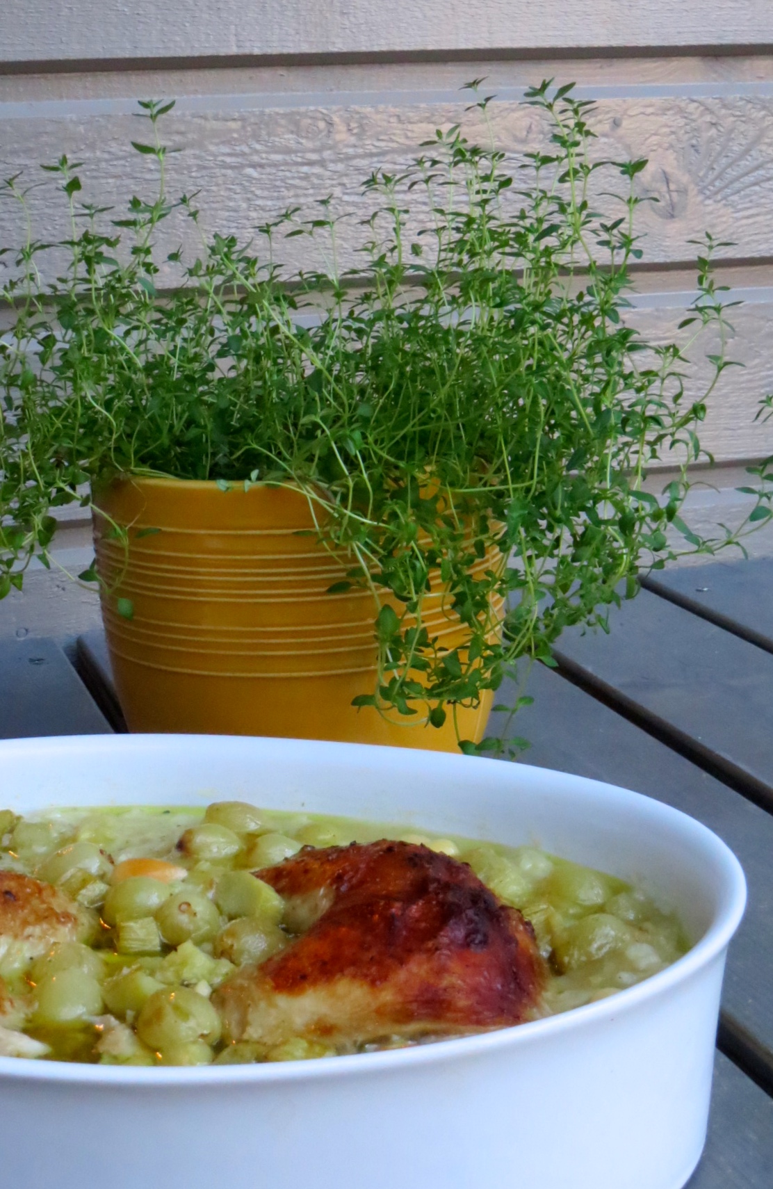 Viimeistele tuoreella timjamilla.