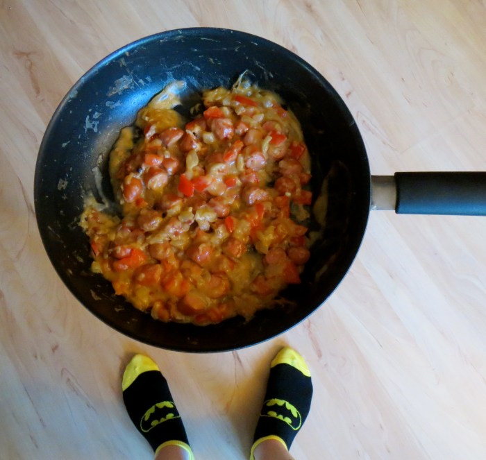 Esittelen lopuksi myös aiemmin kesällä valmistamani ”munayllätyksen”, joka tosin edustaa hieman toisenlaista (aamupala)kulttuuria ja suosittelisinkin tätä ruokalajia pikemminkin runsaalle brunssille tai lisäkkeeksi pääruoalle kuin aamupalapöytään. Jopa Aleksin makuun tämä taisi olla hieman liian tuhtia ollakseen ”aamupalaa”. Pääruokana se esitettiinkin sangen hauskassa uudessa blogituttavuudessani Iskä kokkaa, josta löysin nämä vanhan miehen Yllättävät munat. Yllättävän hyviä, yhdyn iskän sanoihin…