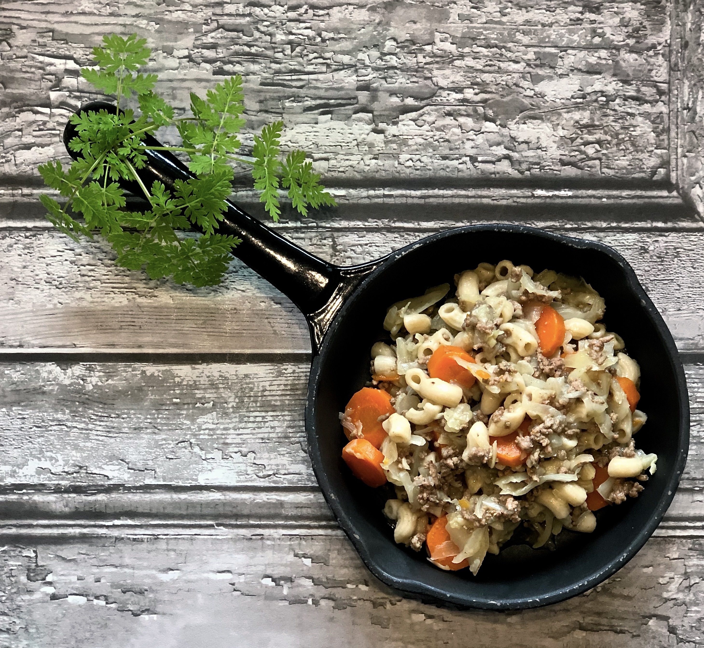Sekä makaroni- että kaalilaatikko kuuluvat arkiruokien klassikoihin. Kun kaksi hyvää laittaa yhteen, syntyy tietysti vieläkin parempaa. Kaali tuo ruokaan toivottuja kuituja ja terveellisyyttä, makaroni lapsille iloa ja äidille oikeutuksen kutsua tätäkin ruokaa makaronilaatikoksi. Kun pinnalle vielä saa valita makunsa mukaan joko puolukkahilloa tai ketsuppia, on menestys taattu. Tämä ruoka on ilman muuta ansainnut jatkopaikan perheemme arkiruokalistalta. Ja niin, kasvisruokapäiviinkin se sopii, koska jauhelihan tilalta proteiinina käytetään soijarouhetta.