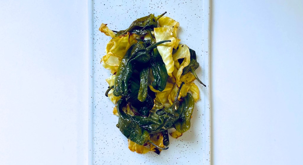 Pimientos de Padrón -paprikoita ja valkokaalia uunissa