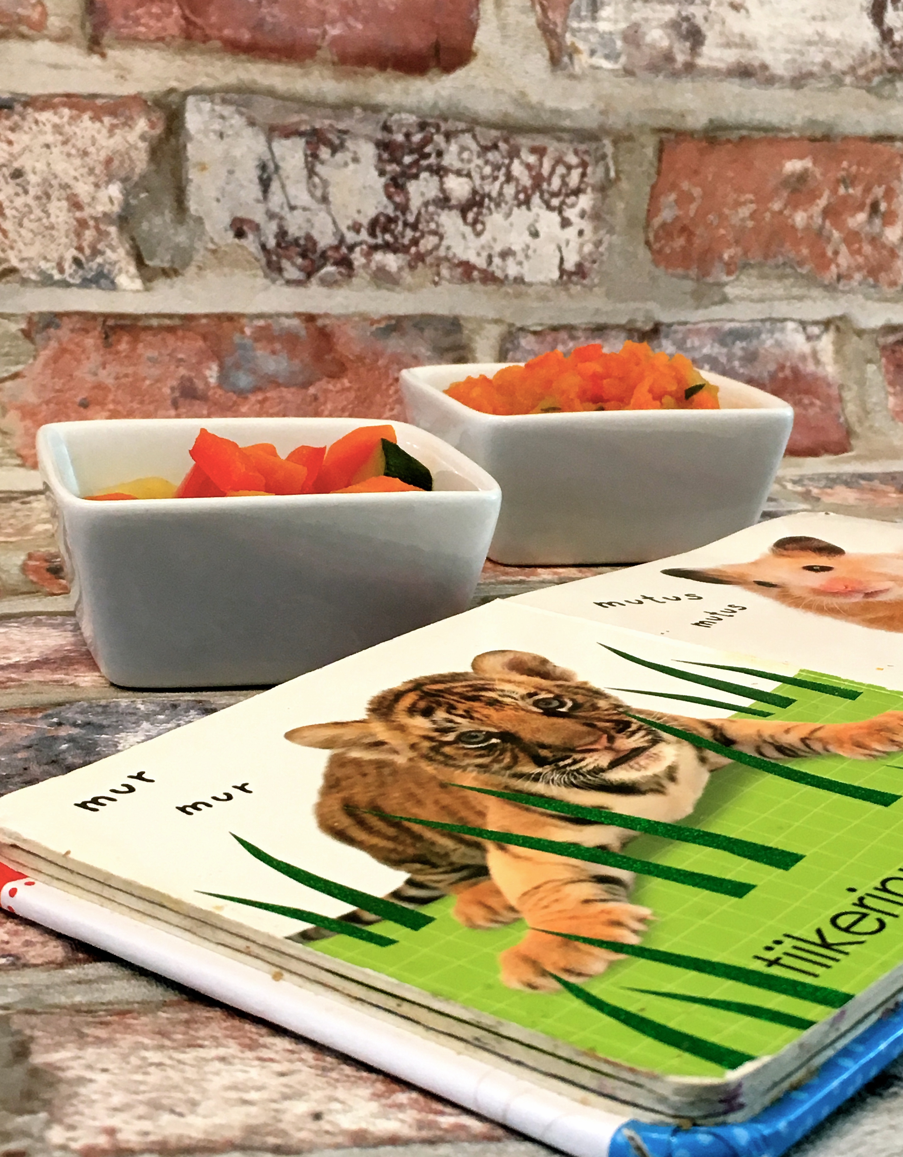 Reseptin löysin jo useasti mainitsemastani oivasta Kasvisruokaa koko perheelle -opuksesta, jota olen lähiaikoina lukenut hieman uusin silmin ja todennut, että monet sen ohjeet sopivat hieman sovellettuina jo alle 1-vuotiaillekin ruokailijoille. Kivaa, saa hyvä kirja taas uutta käyttöä, kun rupean läpikäymään sitä uudestaan Pikku-Kokille – ja toki meille muillekin – ruokaa laittaessani.