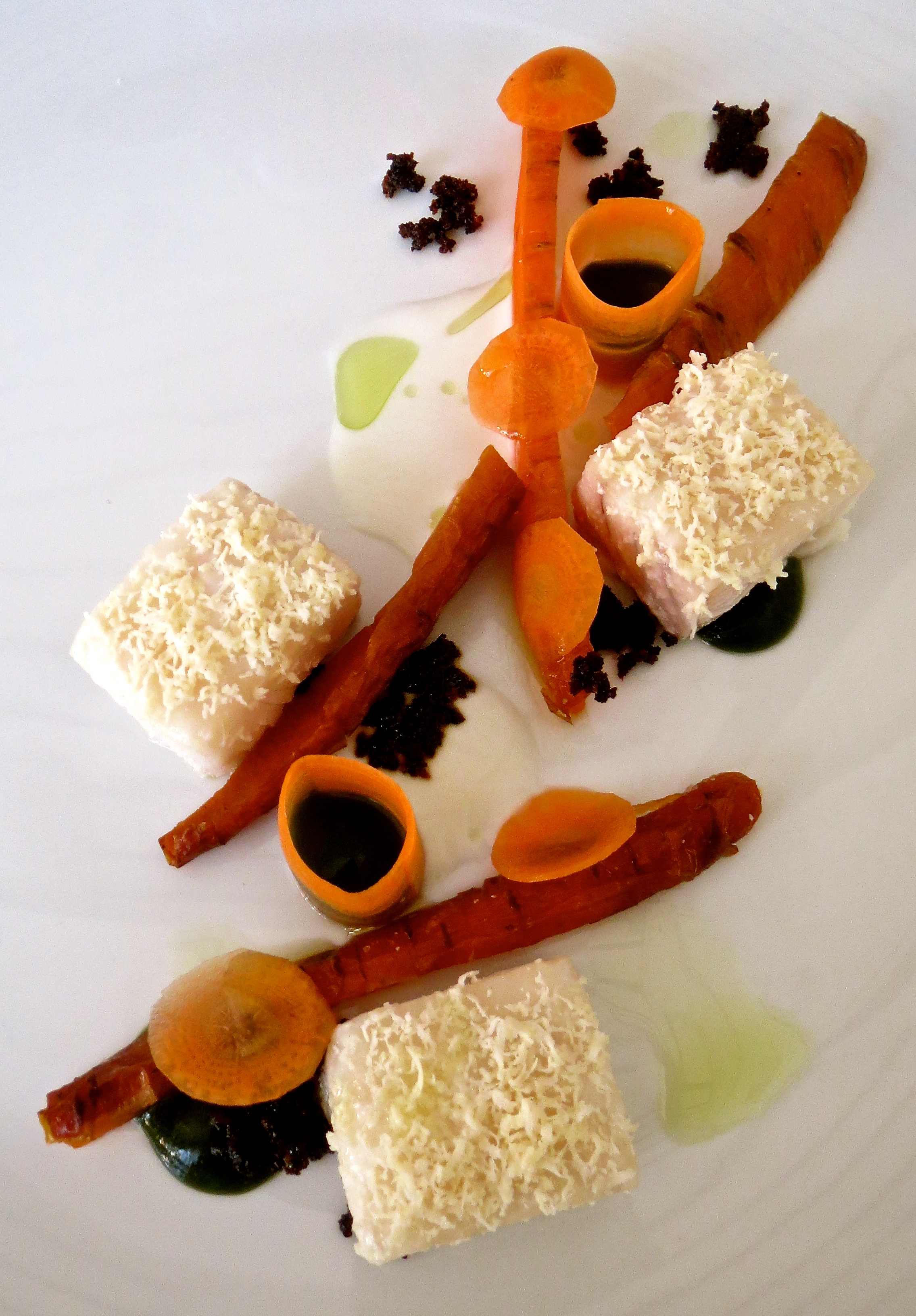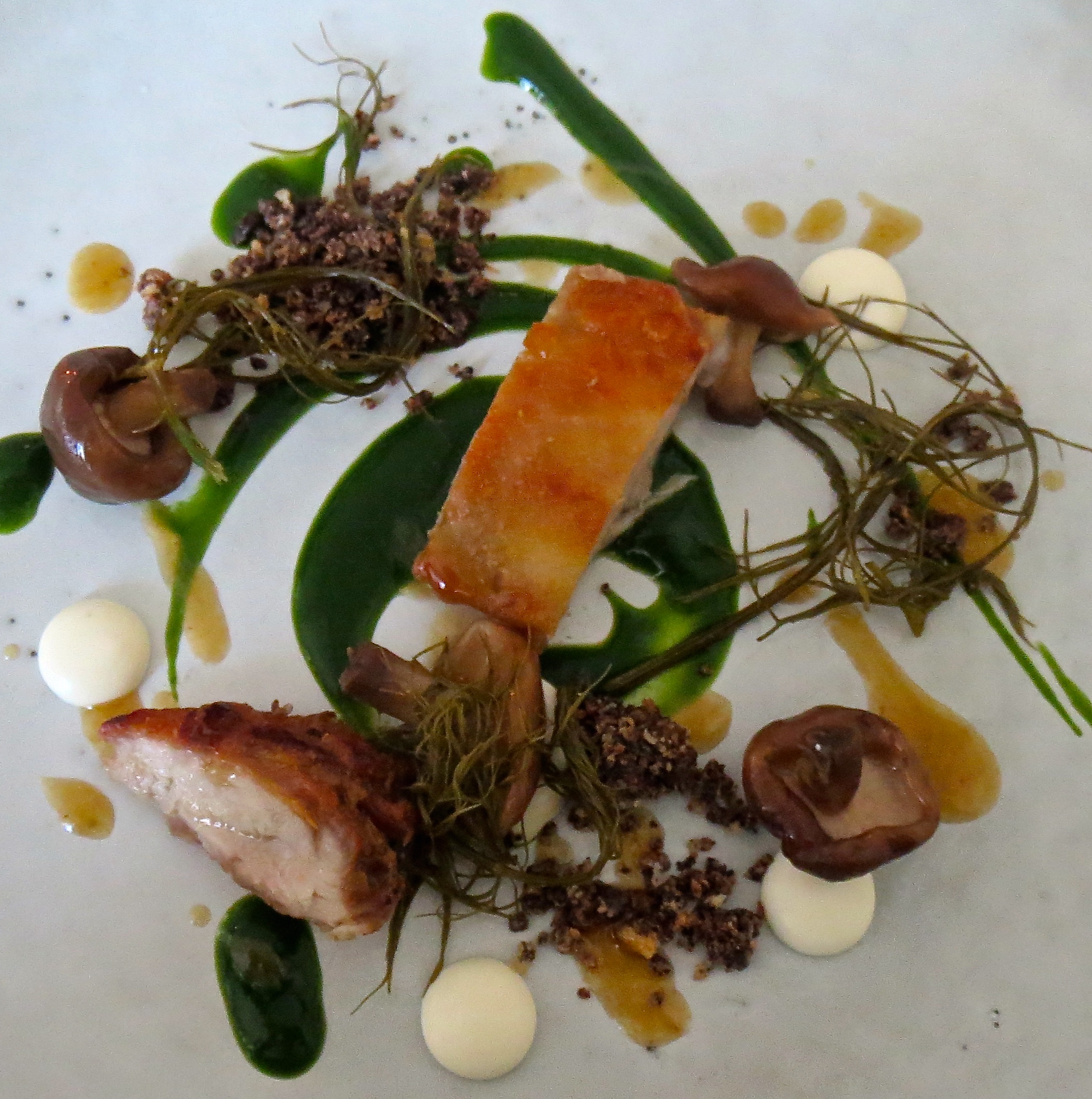 Ensimmäinen alkuruoka, Pyhäjärven kuhaa, Rekolan porkkanaa ja jogurttia on kaksipiippuinen. Kuha on hyvää, jogurtti toimii myös, mutta porkkanat sekä erityisesti öljyinen vihreä kastike miltei terrorisoivat annoksen, joka näin ollen on pakko tuomita epäonnistuneeksi. Toinen alkuruoka, kukko rinnallaan siitakkeita, tattirouhetta, pinaattia ja fenkolia on kuitenkin niin maukas, että pettymys ensimmäiseen unohtuu hetkessä. Jopa fenkoli, johon suhtaudumme molemmat vähintäänkin empivästi, on onnistuttu valmistamaan hurmaavan makuiseksi.