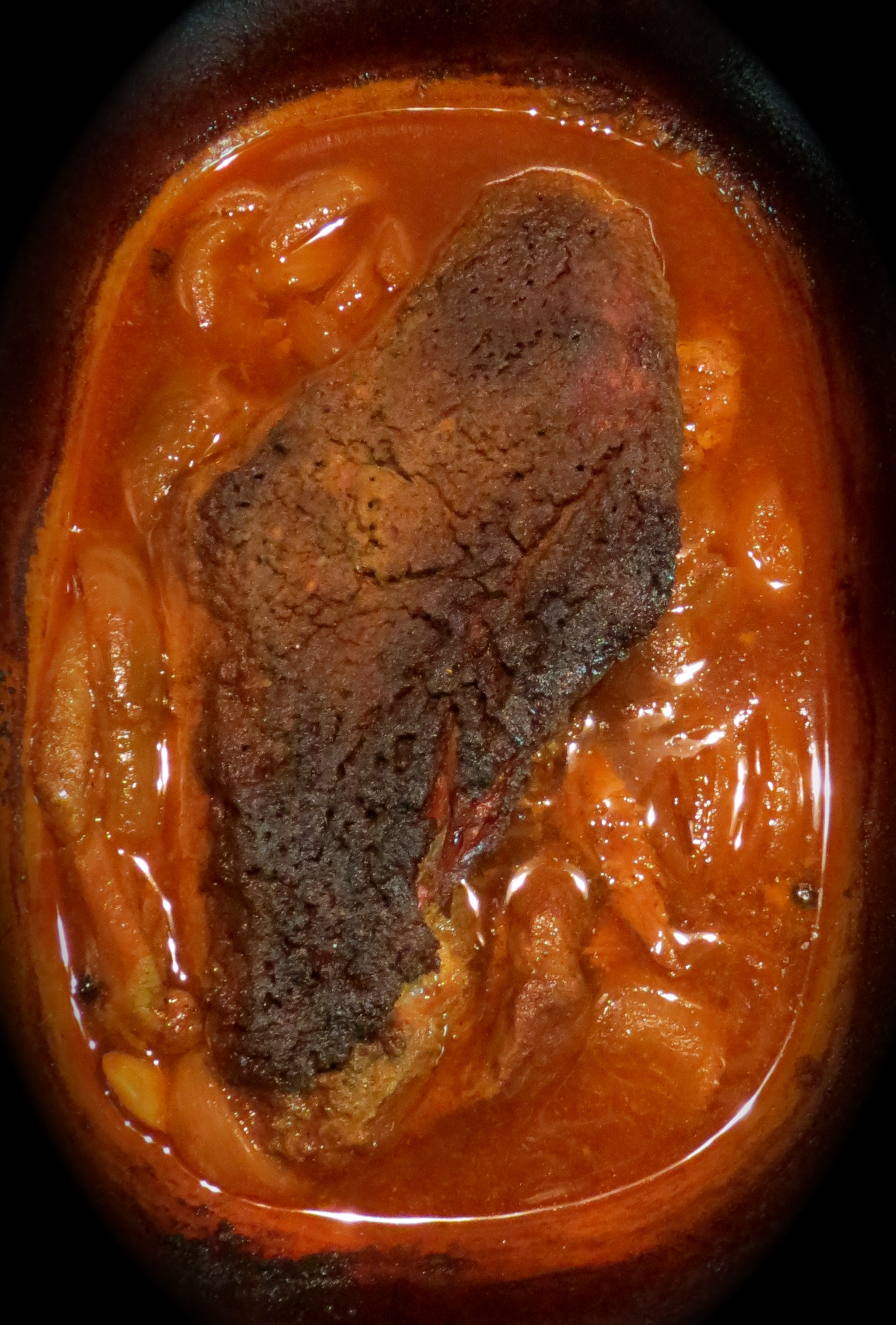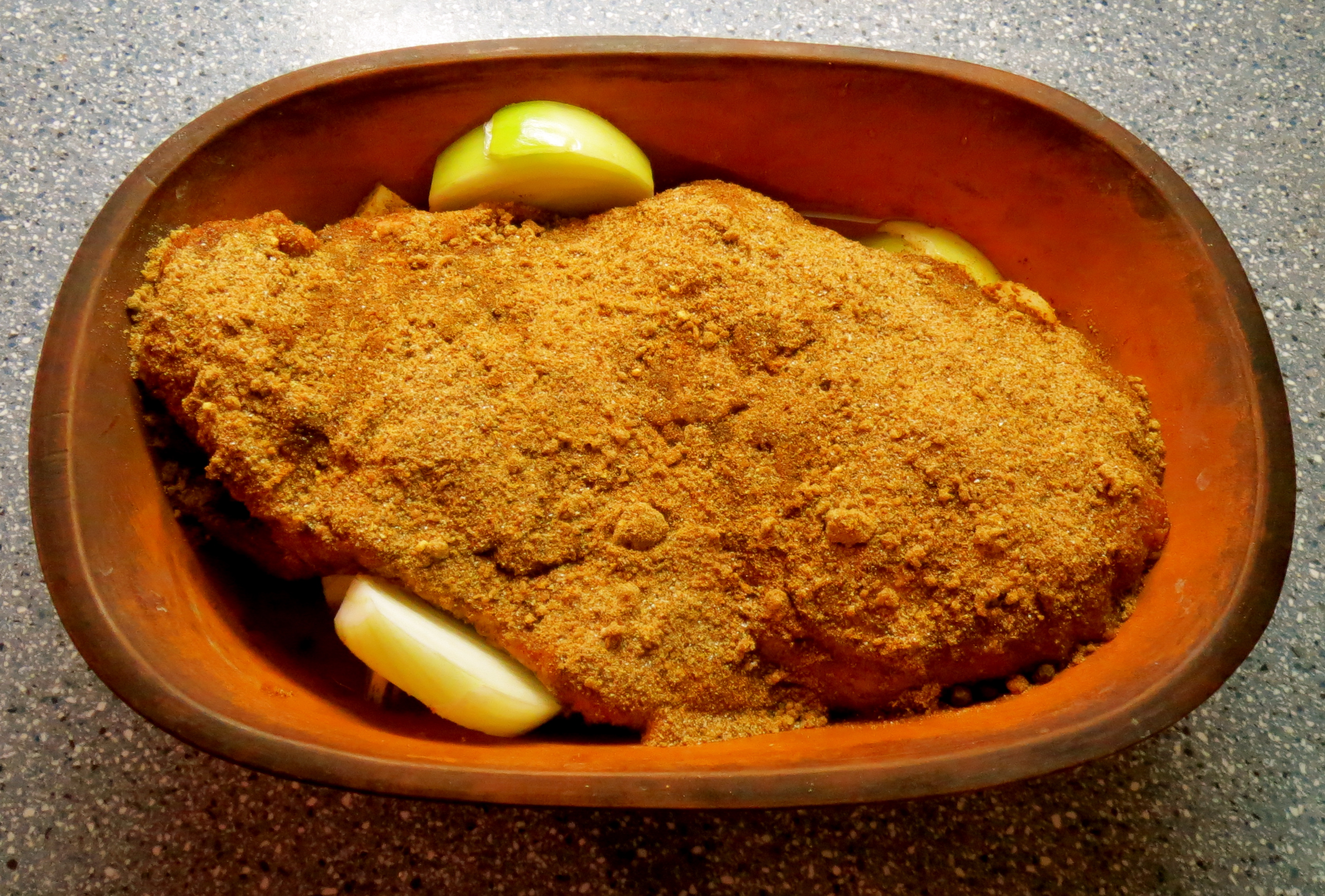 Reseptit lihan maustamiseen sekä grillikastikkeeseen löytyivät jo useasti hyväksi toteamastamme Hampurilainen -keittokirjasta. Kirjan ohjeessa riivitty porsas valmistui grillissä, mutta koska emme tällaista vehjettä omista ja koska halusimme samalla koeajaa hienon perintöpatamme, aidon länsisaksalaisen Schlemmer-Topfin, kypsyttelimme porsaamme siellä. Patakypsennykseen vaadittavan liemen ohjeen löysimme Suolaa & hunajaa -blogista.